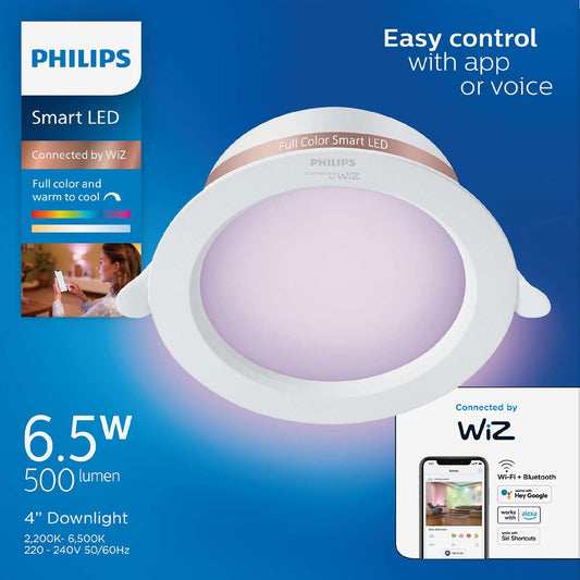 Philips WiZ Downlight (4-Inch) - RGB / 6.5W / Smart Wi-Fi